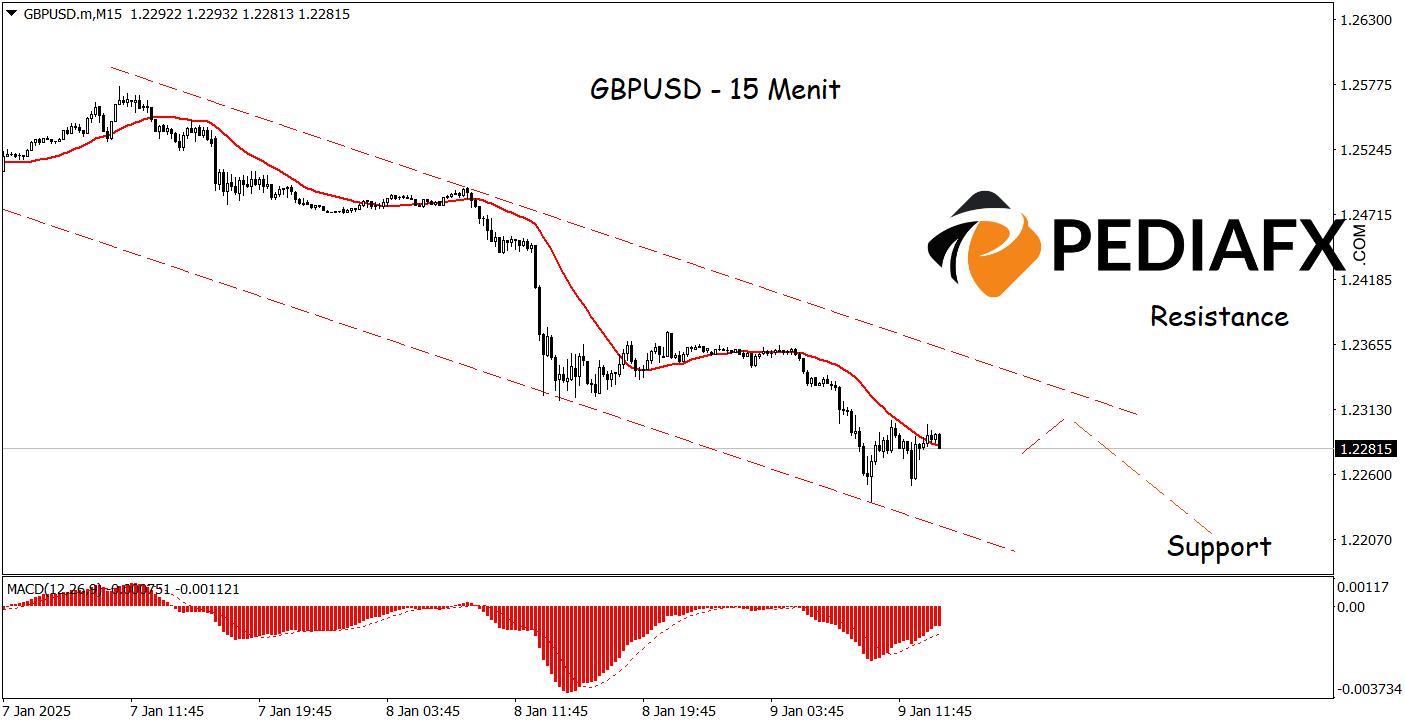 The MACD indicator furthermore validates the possibility of an additional drop, as the MACD line continues to stay beneath the signal line, suggesting that the bearish momentum is still quite robust. The signals derived from both MA and MACD illustrate that GBPUSD is positioned for continued weakness in the near term.