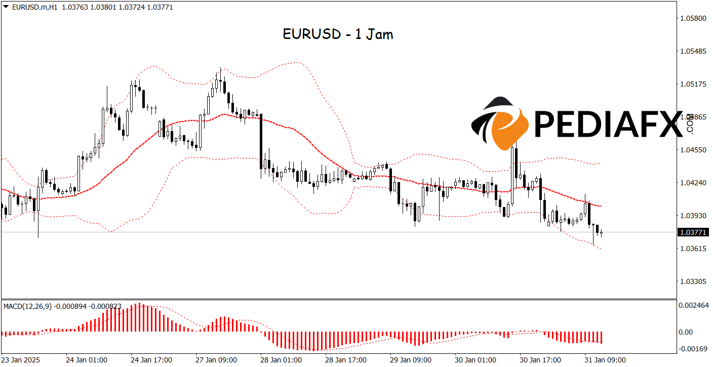 Furthermore, the price’s breach of the lower boundary of the Bollinger Bands reinforces the notion that bearish pressure remains dominant. Should the decline persist, EUR/USD is likely to continue weakening.