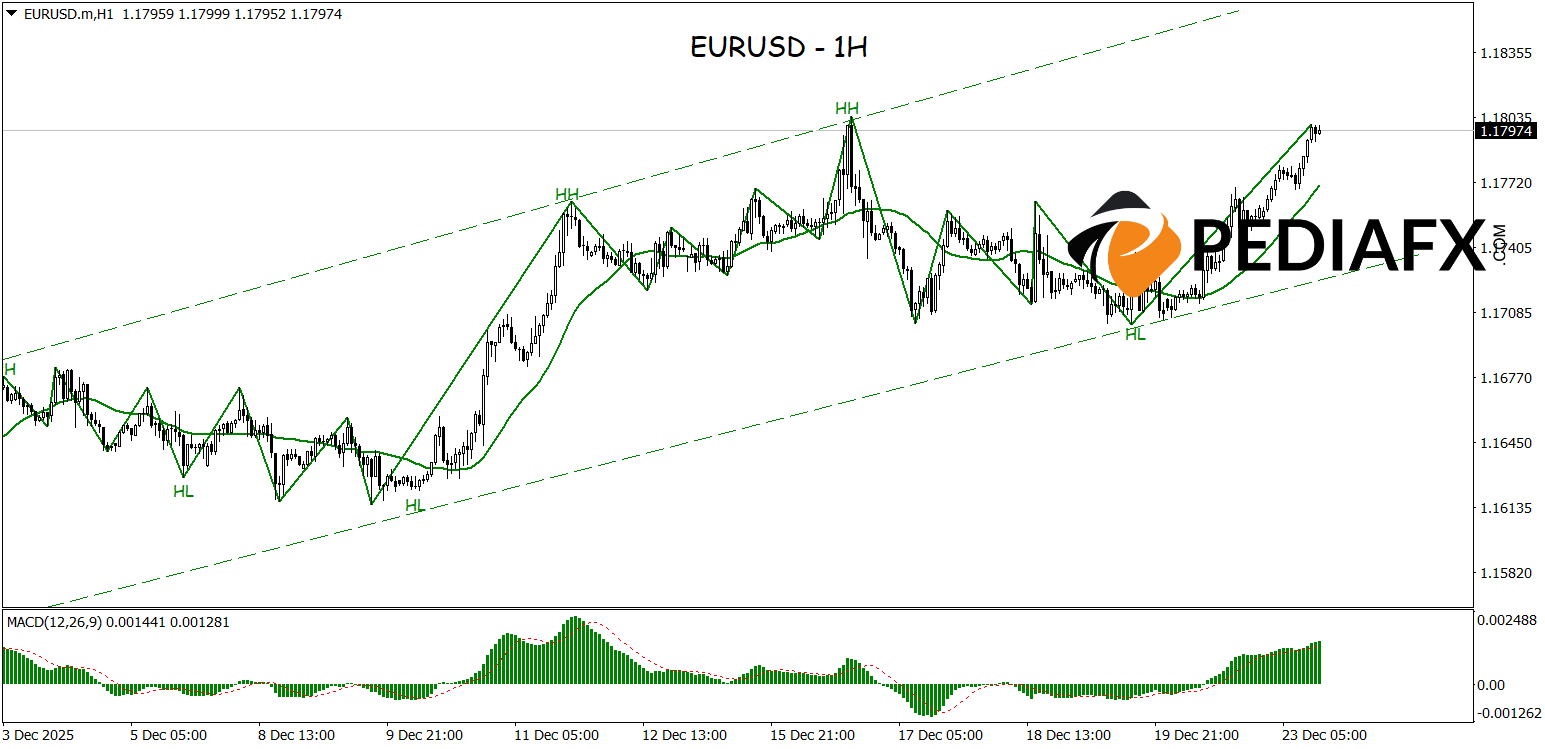 From a technical perspective, the bullish trend is further validated by the ZigZag indicator consistently forming a series of higher highs and higher lows. The upward direction of the Moving Average and the MACD remaining in positive territory suggest that the upward momentum is still strong. This combination of signals opens up opportunities for the EURUSD to continue strengthening and test the next resistance level in the near term.