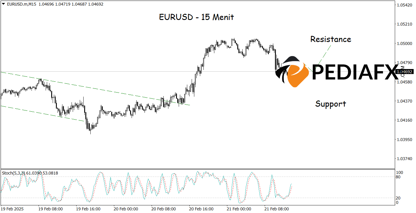 Additionally, the EURUSD is poised for an upswing as the Stochastic Oscillator has entered the oversold territory on the 15-minute time frame, indicating that selling pressure has reached a saturation point, thus increasing the likelihood of a rebound. Should the red line of the Stochastic begin to rise and cross the blue line from below, this would signal the early stages of bullish momentum forming, potentially testing the resistance level at 1.04990.