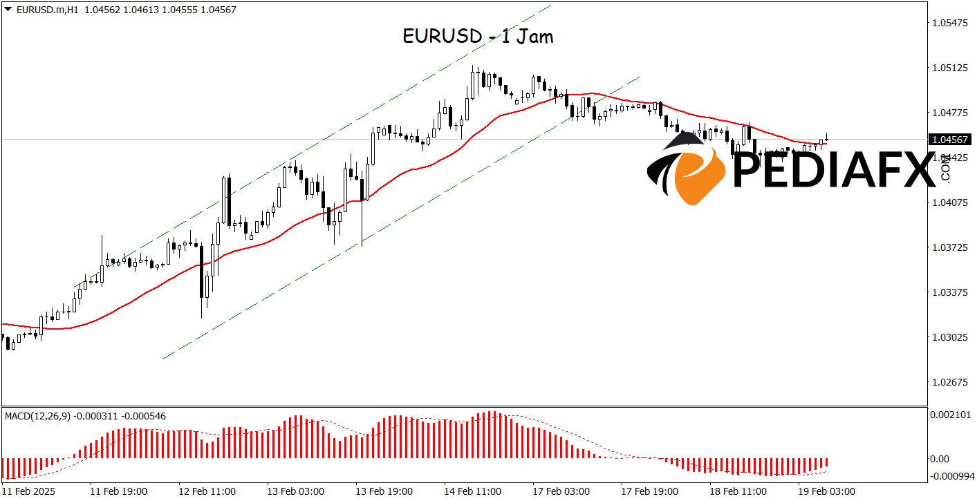 On the 15-minute timeframe, the bearish structure of EURUSD becomes increasingly evident with the emergence of lower highs and lower lows, pointing to a strong bearish trend. The price is currently trading beneath the 24-period MA, which serves as dynamic resistance, reinforcing the potential for further declines. If selling pressure continues, EURUSD might extend its drop towards the support level of 1.04275.