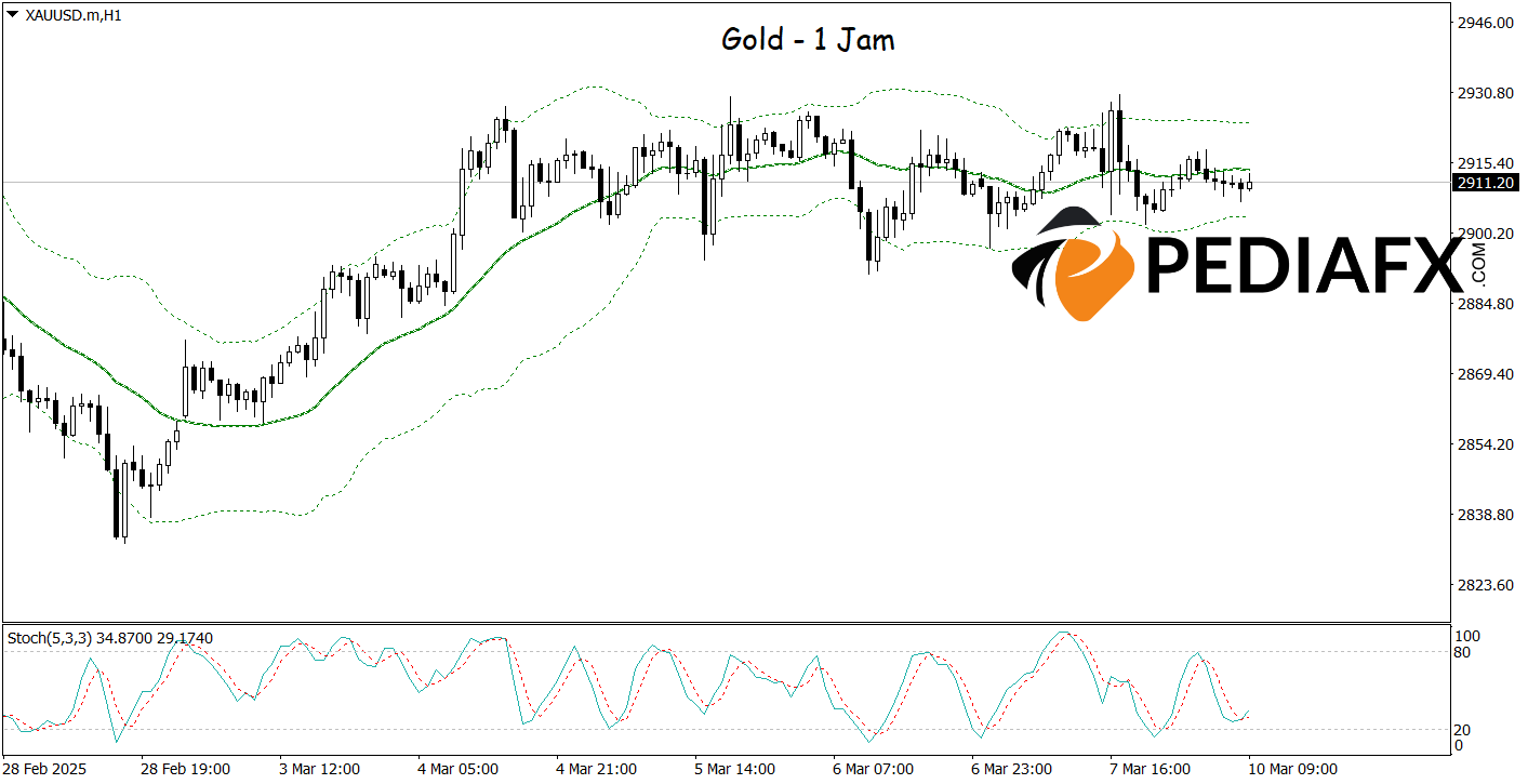 The current trend for Gold prices is displaying a sideways movement near the lower boundary of the Bollinger Bands, suggesting that volatility is beginning to narrow after prior bearish pressure. This level frequently acts as a dynamic support area that could trigger a rebound if selling pressure starts to ease.