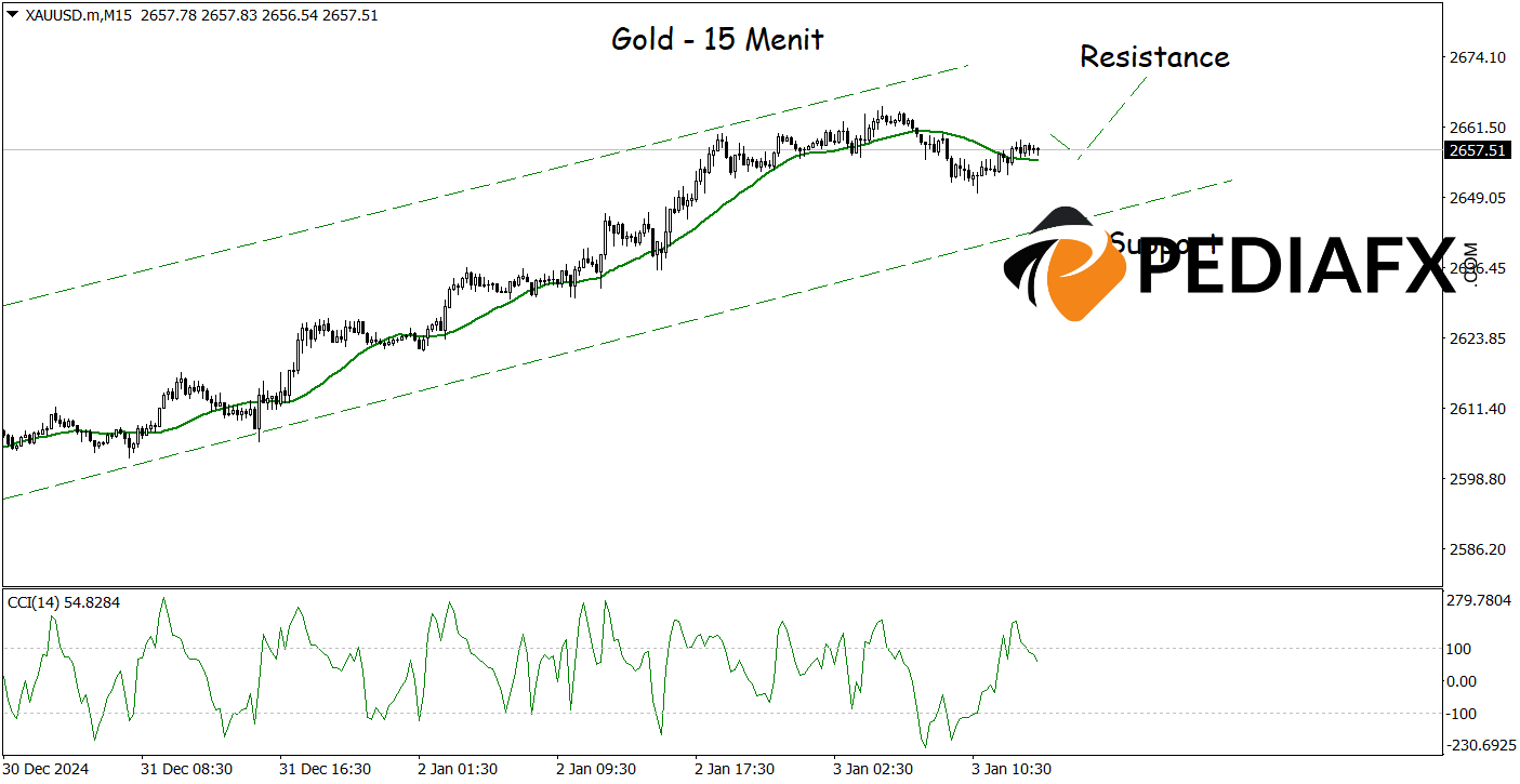 In the 15-minute chart above, gold also continues to display bullish potential as it forms a bullish channel, while the CCI starts to rebound from an oversold condition. If the scenario holds, gold may rise towards the resistance level of $2,670.00 per troy ounce.