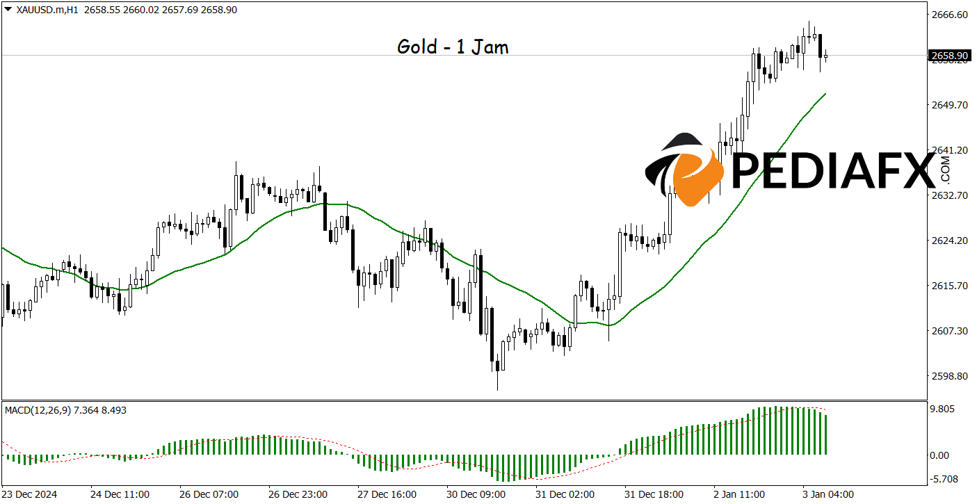 The price of Gold is maintaining its bullish momentum, bolstered by confirmations from the Moving Average (MA) and MACD indicators, which continue to suggest further upward movement. The MA indicates that the upward trend remains strong, while the MACD enhances this outlook with a positive histogram and the MACD line sitting above the signal line.
