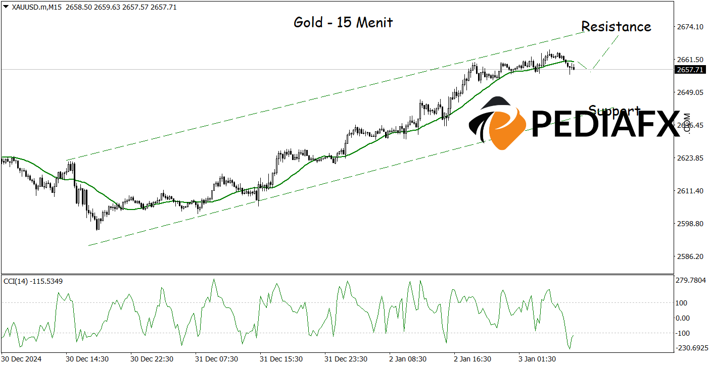 On the 15-minute chart above, Gold is still showing potential for a bullish outcome as the price forms a bullish channel and the CCI begins to rebound from the oversold territory. If the scenario plays out as anticipated, Gold could rise towards the resistance level of $2,670.00 per troy ounce.