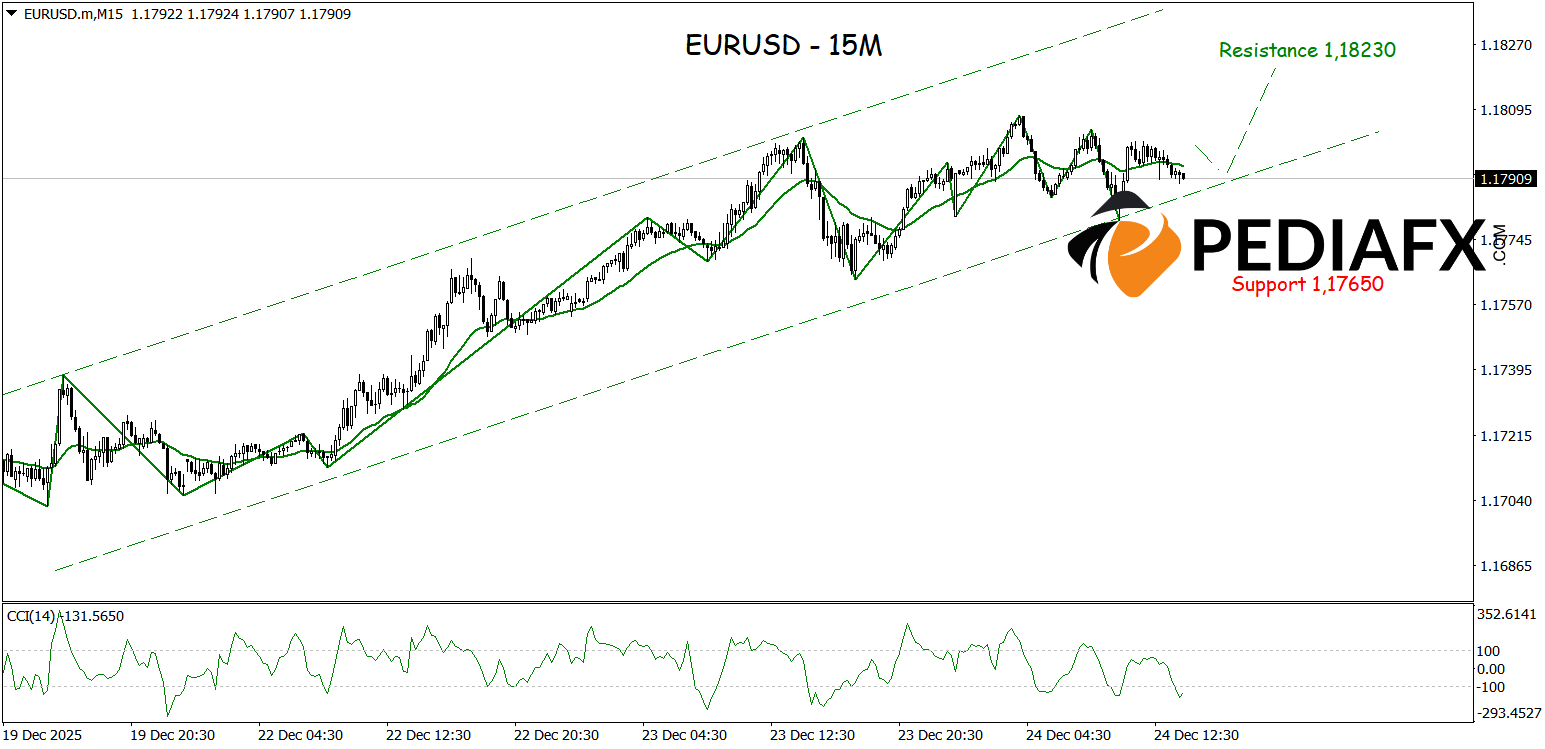 On the 15-minute chart, EURUSD also maintains a robust 上升趋势 in its 日内 movements. The persistent bullish direction of the ZigZag and the continually rising Moving Average emphasize the short-term dominance of 买家. Additional support comes from the CCI being in the oversold area, reinforcing EURUSD’s potential to rise towards 反抗 at 1.18230 soon.