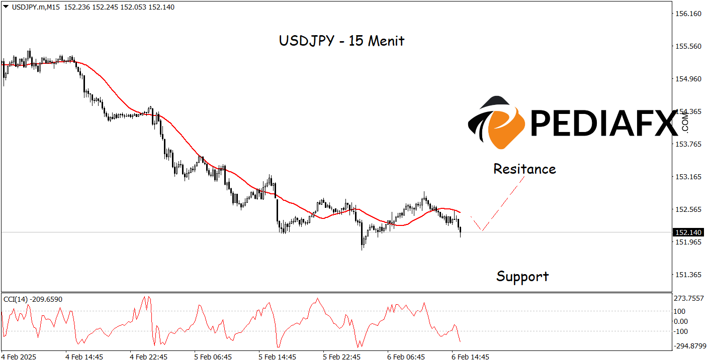 美元兌日圓在形成 雙底 15 分鐘圖上的模式表明,有進一步上行的可能性。此外,CCI(商品通道指數)已跌至 超賣 區域,顯示拋售壓力正在減弱,市場即將逆轉。如果一切按計劃進行,美元兌日圓可能會測試 反抗 位於 153.155。