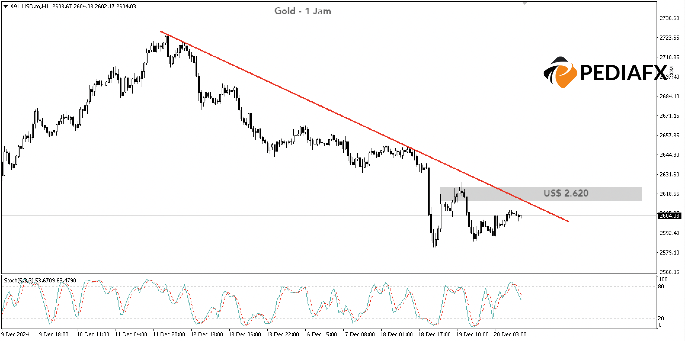 只要金價維持在 $2,620 下方,就有可能跌至 $2,588 左右。如果突破該水平,下一個下跌目標可能是 $2,580。